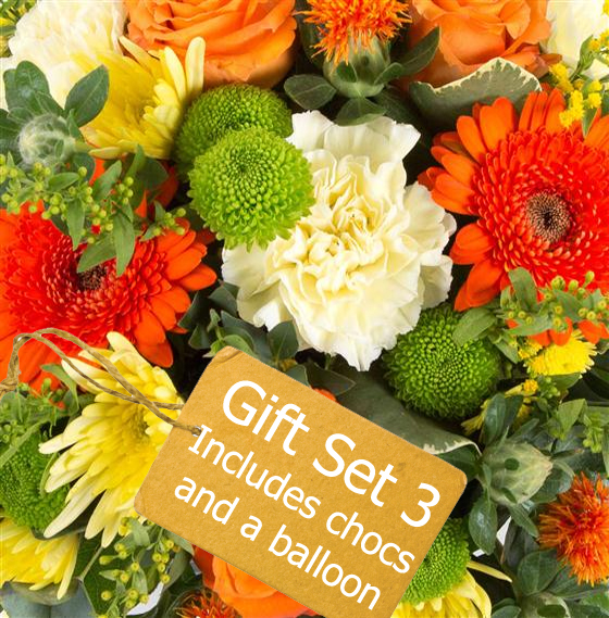 Unsure what to flowers send? Simply select a colour theme and price and we will prepare a stylish arrangement of flowers to suit the occasion in a glass vase complimented with a box of milk chocolates and helium foil balloon.