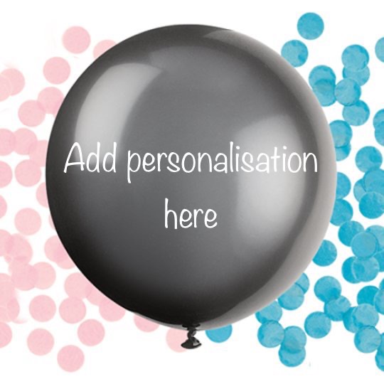 Great for a gender reveal party this 24 inch black latex balloon comes with pink or blue confetti to reveal the gender of your new baby. Personalised just for you!