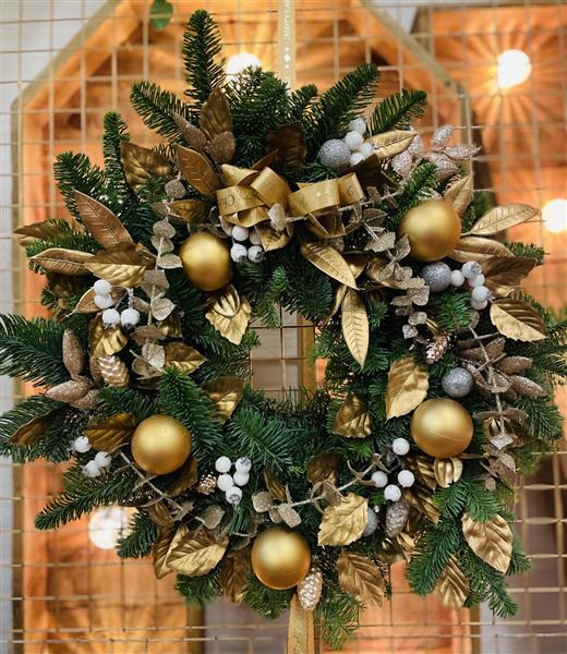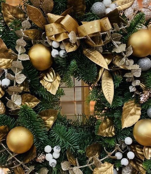 If Glitz and Glamour is your thing then this wreath is for you! it has everything...sparkle, ribbon, berries, baubles, gold leaves and sparkly foliage!