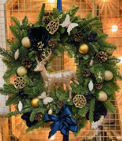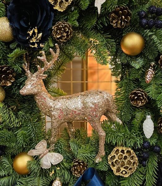 Majestic Beauty wreath is just that majestic! consisting of everything you need for a majestic wreath the reindeer sits as centre of attention surrounded by baubles, festive flower, pinecones and berries!