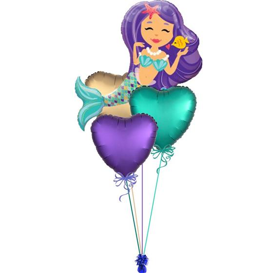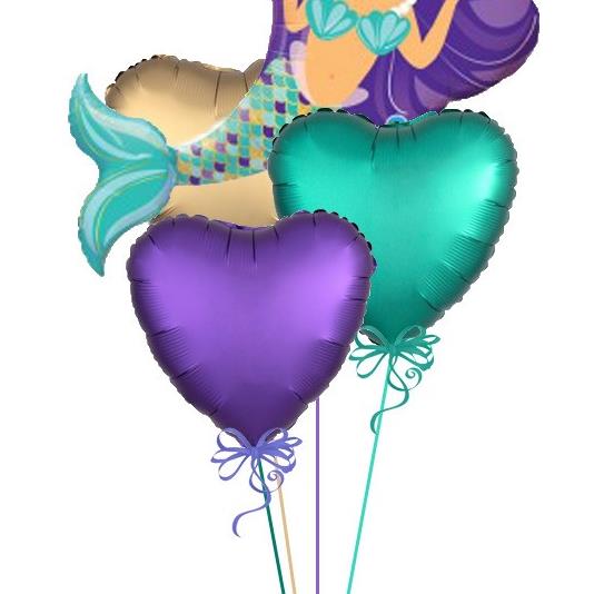 An enchanting mermaid is what any under-the-sea themed party needs, Paired with 3x heart foil balloons to make this a perfect under the sea bouquet.